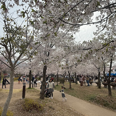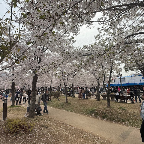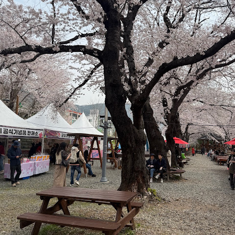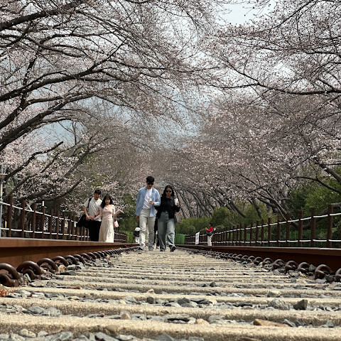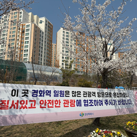 KLOOK에서 예약한 "서울/부산 출발 진해 분홍 벚꽃 축제 투어"의 일환으로 이곳을 방문했는데, 강력 추천합니다. 제가 가장 추천하는 투어는 일찍 가서 사람들이 바로 편집하지 못하게 하고 싶지 않은 사진을 찍는 것입니다. 오전 9시까지 광각으로 찍은 사진은 모두 마음에 드세요. 그런 다음 주변을 돌아다니며 벚꽃과 사람 구경, 간식 등을 즐겨보세요. 벚꽃 축제 기간 동안 인기 있는 사진 촬영 장소입니다. 저는 2025년 3월 30일에 방문했는데, 그날은 서울에 예상치 못한 늦은 봄이 흩뿌려져 올해 봄은 느리게 시작되었고, 가이드는 이 시기가 만개율의 약 25%라고 했습니다. 올해 예보를 기준으로 비행 시간을 정할 수는 없지만, 25% 만개율은 전혀 실망스럽지 않았습니다. 저는 이곳 벤치에 앉아 몇 시간 더 즐겁게 구경할 수 있었을 것입니다.