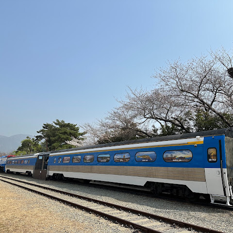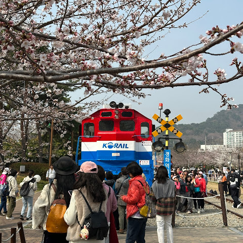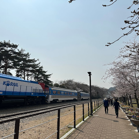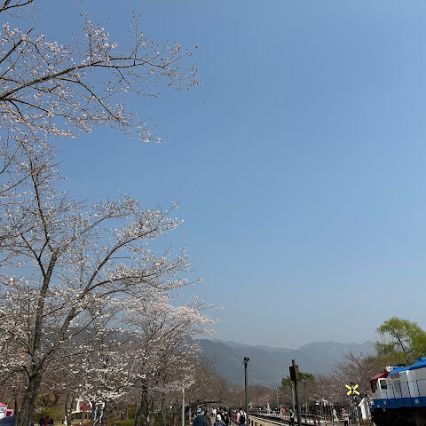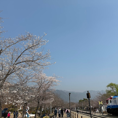 벚꽃 만개할때면 1차로 가는곳입니다. 길이는 짧지만 옛날 기차의 빨갛고 파란색과 어울려 사진도 이쁘고 운치있습니다.