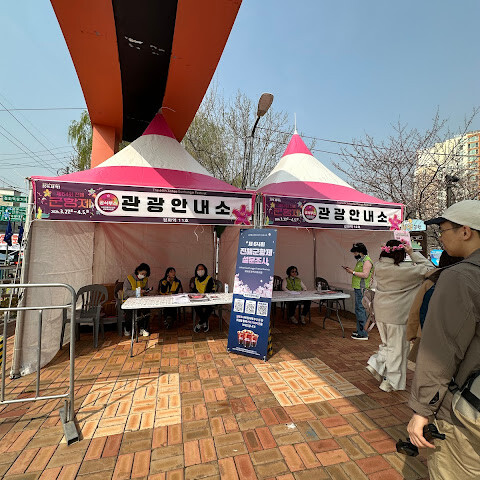비가 오기 전에 가서 다행이 꽃들을 볼 수 있었어요. ㅎㅎ 공용 주차장이 있으나 행사기간에눈 주차하기 힘드니 주변 길가에 주차 해야 합니다. 큰 벚꽃나무 가지들이 맞닿아 있어 벚꽃 터널을 연상 시키게 되요 ㅎㅎ 가볼 만한 명소 입니다. 😊