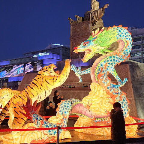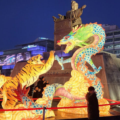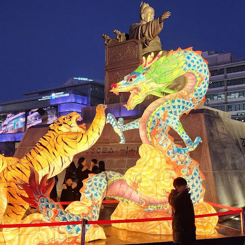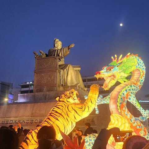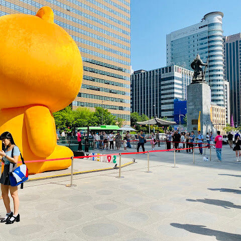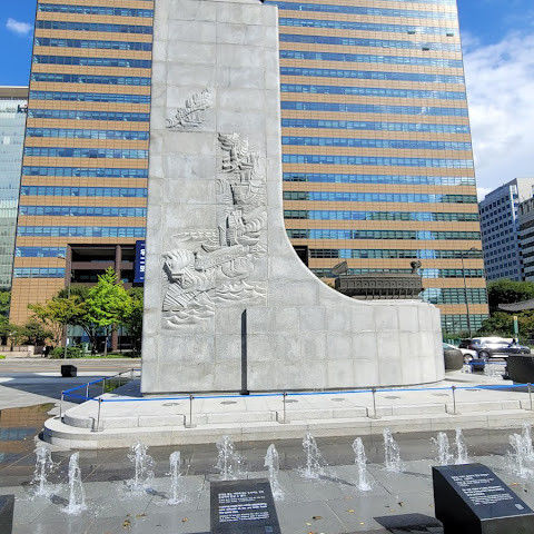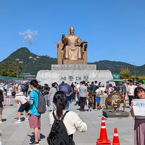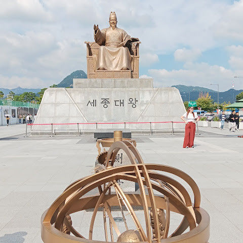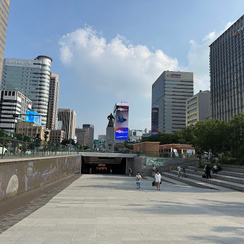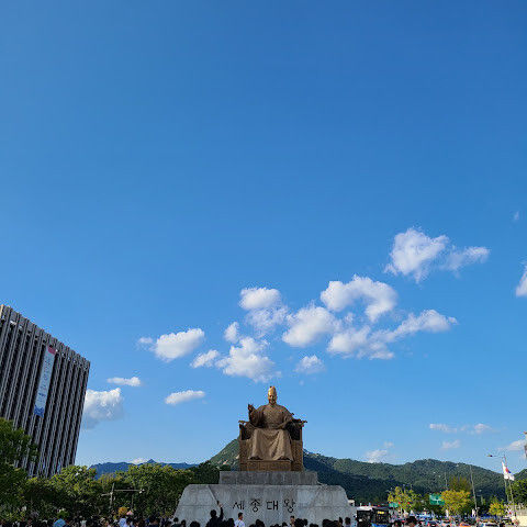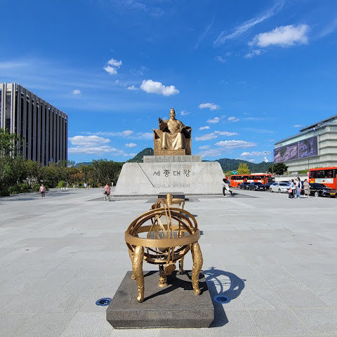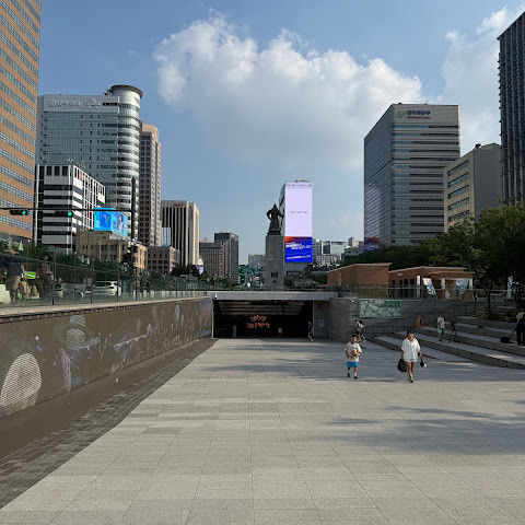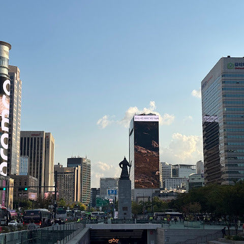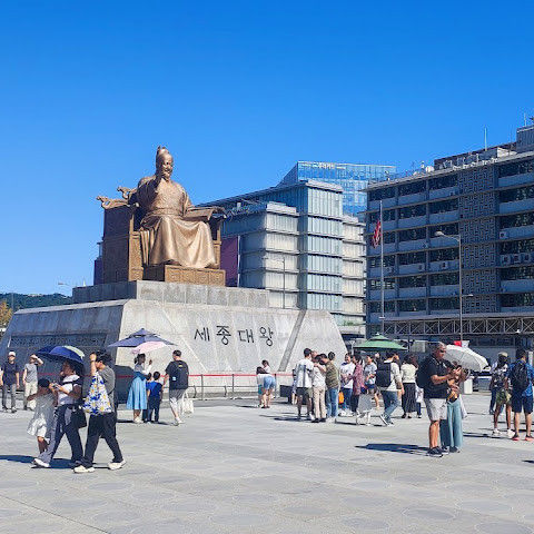 광장에는 두 개의 상징적인 동상이 있습니다. 바로 한국 해군 영웅 이순신 장군과 한글을 창제한 세종대왕입니다. 두 동상 모두 한국의 주요 인물들의 이야기와 업적을 보여주는 무료 지하 전시관과 함께 운영됩니다.