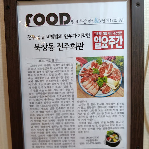 북창동 전주회관은 50여 년의 전통을 이어온 한국 민속음식점으로 한국의 대표 음식인 비빔밥, 파전, 갈비탕, 불고기 등을 최상의 재료를 사용하여 정성을 다한 영양가 풍부한 음식으로 내국인은 물론 외국인들에게도 호평을 받고 있으며 한국의 전통음식을 외국에 널리 알리고자 항상 최선을 다하고 있다.