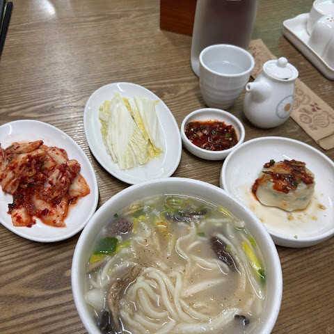 식당이 여러 개 있다고 하더군요. 민속 박물관 옆에 있는 식당에 가 봤습니다. 미슐랭 가이드에 등재된 명패가 많아서 실망하지 않았습니다. 만두는 훌륭했고, 국수도 아주 맛있었습니다. 한국어를 못 하는데도 환영해 주셔서 정말 좋았습니다. 저희는 뒤쪽 테이블에 바닥에 앉았습니다. 정말 멋진 경험이었습니다.