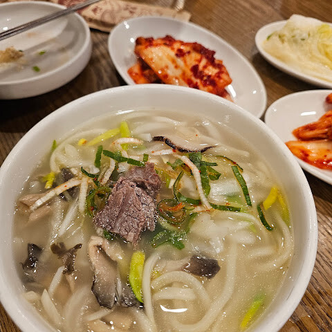 식당이 여러 개 있다고 하더군요. 민속 박물관 옆에 있는 식당에 가 봤습니다. 미슐랭 가이드에 등재된 명패가 많아서 실망하지 않았습니다. 만두는 훌륭했고, 국수도 아주 맛있었습니다. 한국어를 못 하는데도 환영해 주셔서 정말 좋았습니다. 저희는 뒤쪽 테이블에 바닥에 앉았습니다. 정말 멋진 경험이었습니다.