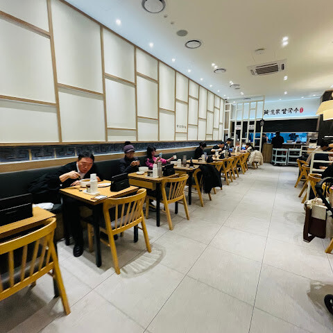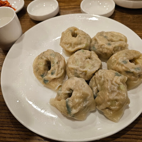 줄이 길어서 30분 정도 기다렸는데, 셔터가 내려져 있고 난방이 되는 곳이었어요. 만두는 크고 국물이 있는 것과 국물 없이 삶은 것 두 가지 스타일이 있는데, 국물 없는 것은 맛이 좀 밍밍했어요. 양파랑 파가 너무 많이 들어있었고, 국물은 밍밍한 맛이었어요. 사이드 메뉴는 맛있었지만 직원들이 너무 불친절했어요. 음료 리필도 안 되더라고요.