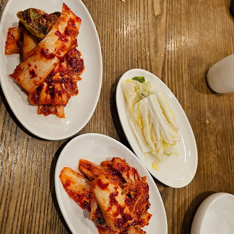 경복궁 근처에 있는 유명한 곳이에요. 진한 맛은 물론이고, 순하고 담백한 양념이라 건강해 보이더라고요. 그런데 사람들이 너무 많아서 줄을 서 있었어요. 번호표도 없어서 앉아서 차례를 기다려야 했어요. 매운 김치와 순한 김치 두 종류가 있어서 좋았어요.
