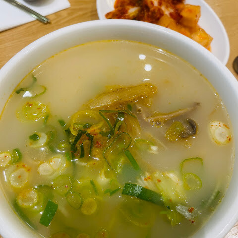수프만 있어요. 한국 음식만요. 하지만 제가 먹어본 공항 중 가장 맛있었어요. 음식의 질이 대부분 기대에 못 미치는 공항이거든요.