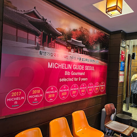 칼국수를 강력 추천합니다. 칼국수라는 이름이 붙은 데에는 이유가 있습니다. 다른 요리를 먹어보려고 하더라도, 테이블에서 나눠 먹을 칼국수는 꼭 주문하세요. 이 레스토랑이 미슐랭 가이드에 있는 것 같아서 테이블을 기다리는 시간이 꽤 걸릴 것 같습니다.