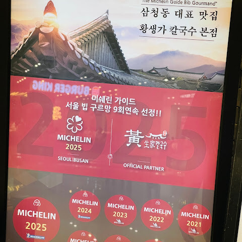 황생가칼국수는 국립민속박물관 건너편, 국립현대미술관 옆 정독도서관 들어가는 골목에 있으며, 칼국수 전문점으로 사골 국물의 칼국수와 함께 어머님 솜씨로 만든 왕만두가 일품인 곳이다. 2001년 12월 북촌칼국수로 시작해서 2014년 (주)황생가칼국수로 법인 전환을 하면서 20년 넘게 한 자리에서 변하지 않는 맛과 정성으로 고객들을 맞이하고 있다. 한우 사골을 푹 고아낸 국물에 직접 뽑은 쫄깃하고 부드러운 전통 사골 칼국수는 미쉐린 가이드 서울 맛집으로 여러 해 선정된 가게로 세계인도 인정한 맛집이며, 옛날식 수육과 여름 한철 선보이는 콩국수도 별미이다.